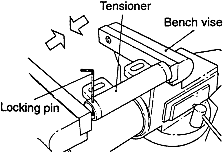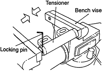 | Fig. 22: Once the tensioner is removed from the vehicle,