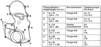 | Fig. 36: Timing belt cover retainer specifications — 2.4L engine |