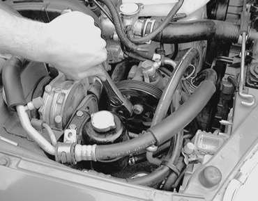 | Fig. 8: Unfasten the power steering pump retaining