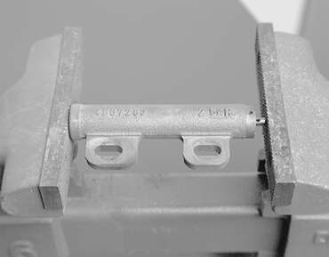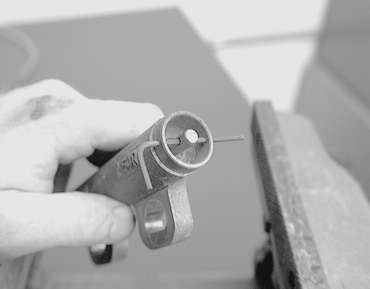 | Fig. 23: Use the vise to carefully compress the plunger