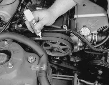 NOTE: If the timing belt is to be reused, mark the direction of rotation on the flat side of the belt with an arrow.