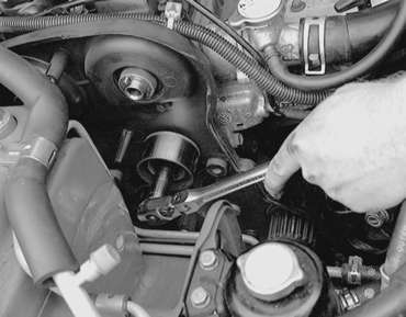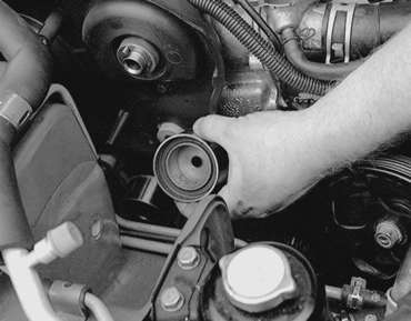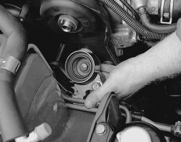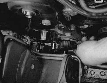 | Fig. 14: Remove the timing belt tensioner