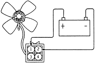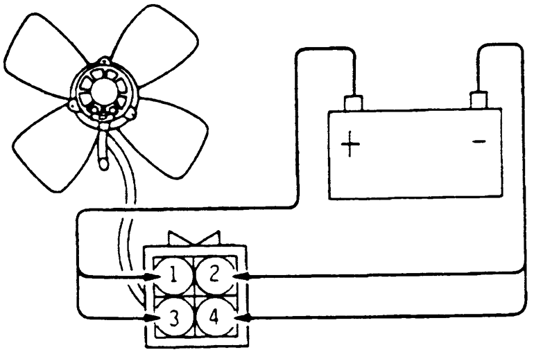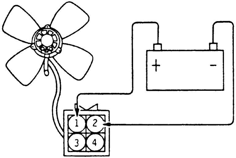 Fig. 1: Engine cooling fan testing connections — 1990–94