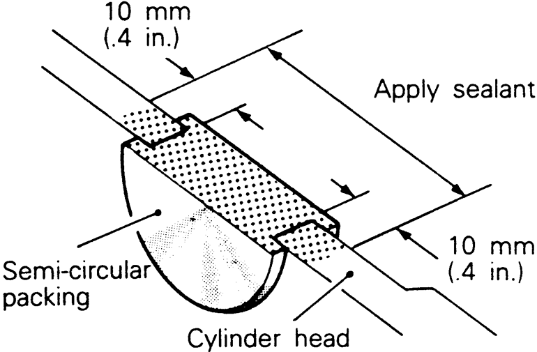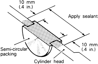 | Fig. 2: Install the semi-circular packing into the cylinder head, then apply sealant to its top surface |