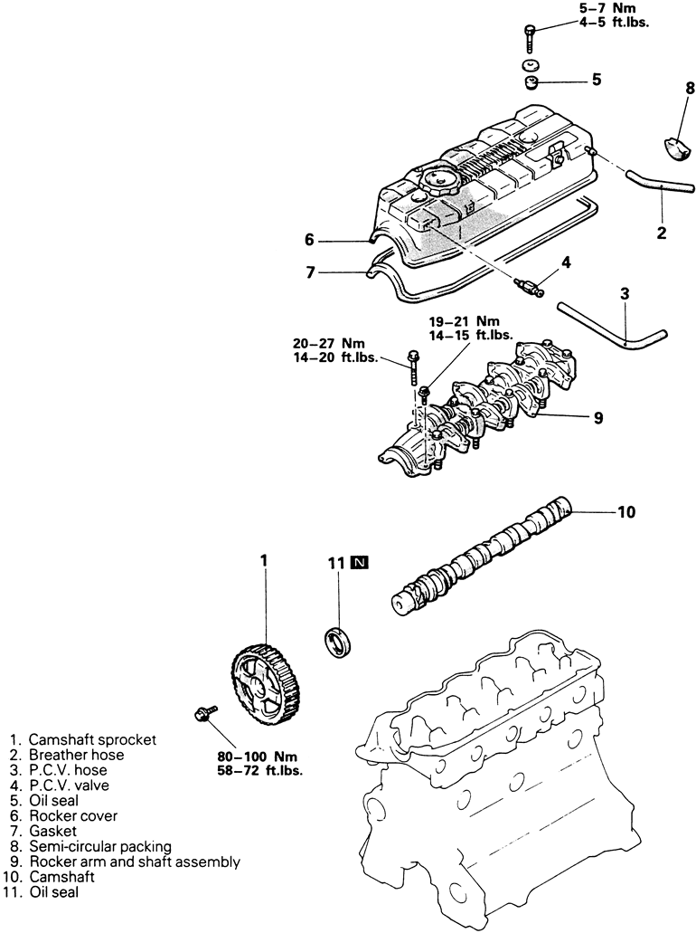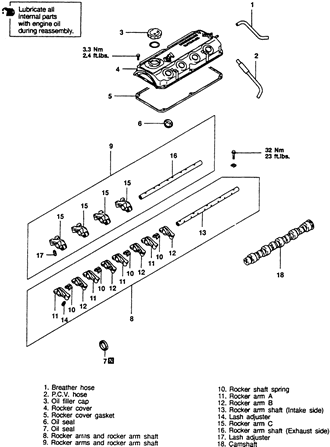 | Fig. 10: Exploded view of the rocker arm cover, rocker arms and related components — 2.4L engine shown |