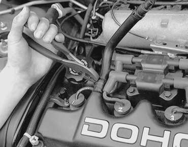 | Fig. 5: On some vehicles, such as this 1996 2.0L