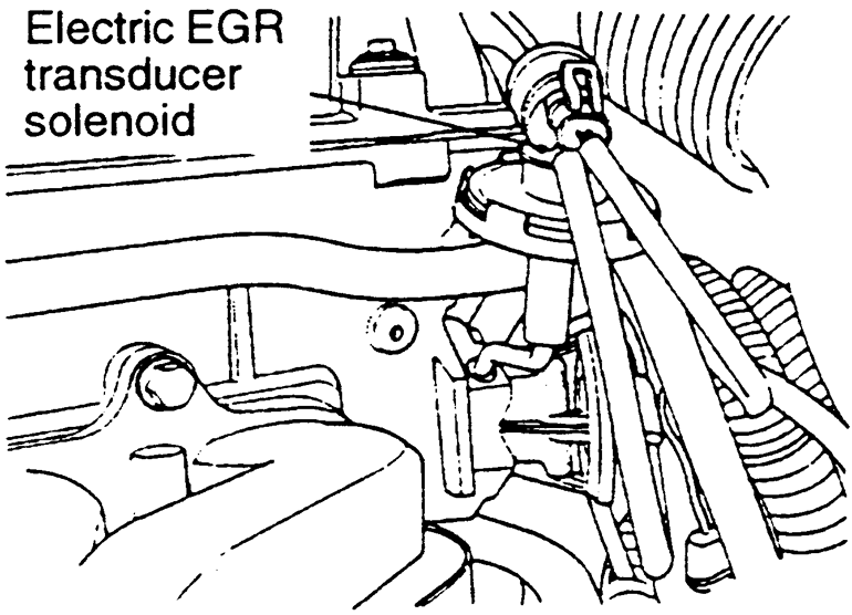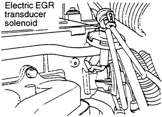 | Fig. 2: Location of the electric EGR transducer solenoid — 1995–98 2.0L non-turbo engine |
