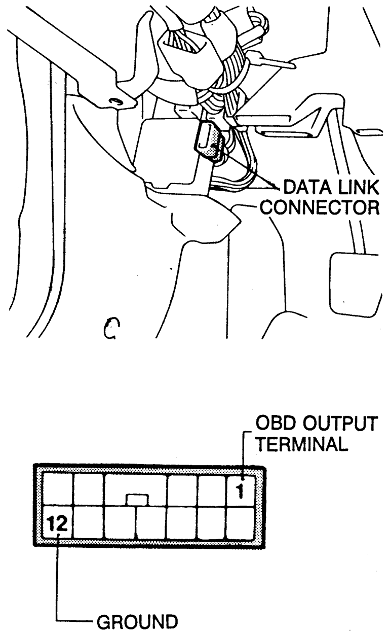 - Connect an analog voltmeter between the on-board diagnostic output terminal