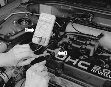 coolant temperature sensor (1) with an ohmmeter (2) — 1996