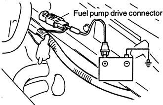 NOTE: Since the fuel pump is located in the fuel tank, its operating sound cannot be readily heard. Remove the fuel tank cap and listen to the operating sound through the filler port.