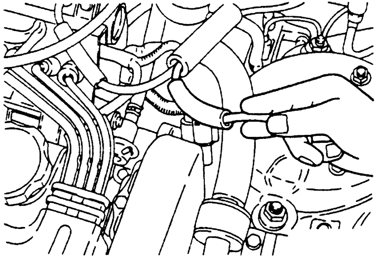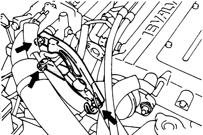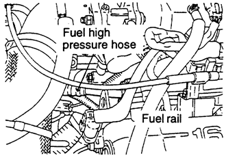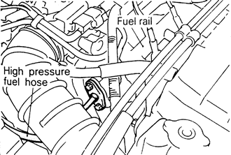 | Fig. 3: Location of the high pressure fuel hose and fuel rail — 1990–94 vehicles |