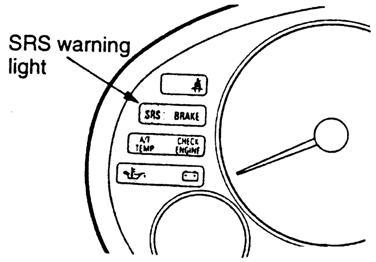 | Fig. 1: After arming the system, if the SRS light stays illuminated for 7 seconds and then goes off, the air bag system is functioning properly |