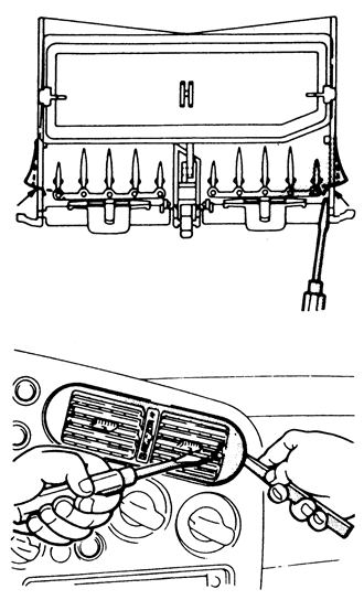 | Fig. 1: Carefully pry the center air outlet away from the instrument cluster bezel |