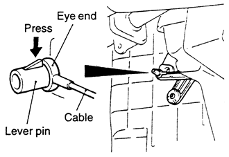 | Fig. 3: Press the lever pin in, then disconnect the cable from the control |
