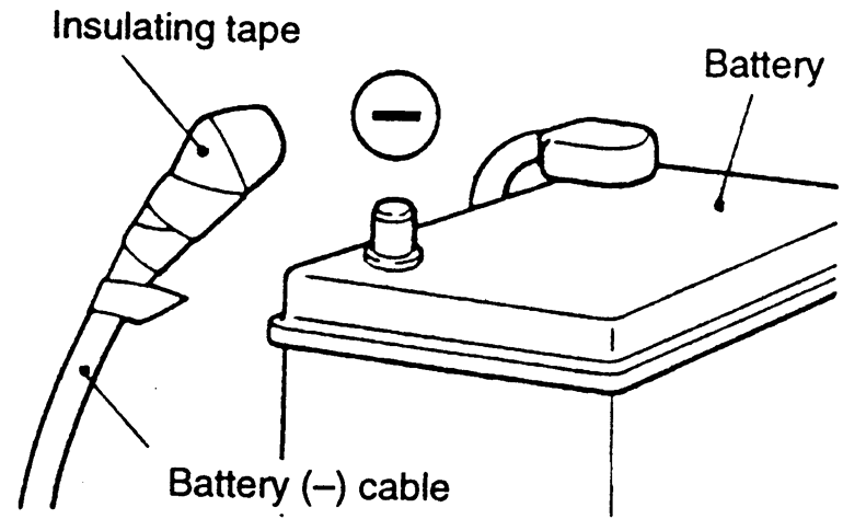 | Fig. 1: For extra assurance, wrap the battery cable with tape to avoid contact with the terminal and possible air bag deployment |