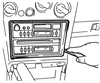 | Fig. 3: Using a plastic trim tool, carefully pry the radio trim panel away |