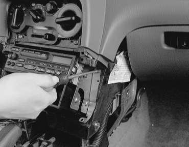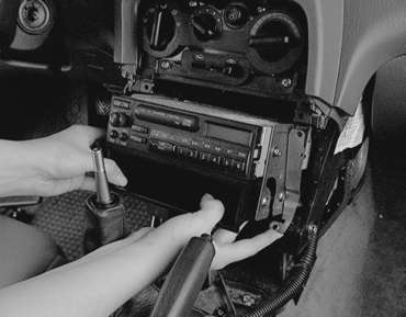 | Fig. 2: For 1995–98 vehicles, you must remove the console in order to access the radio |