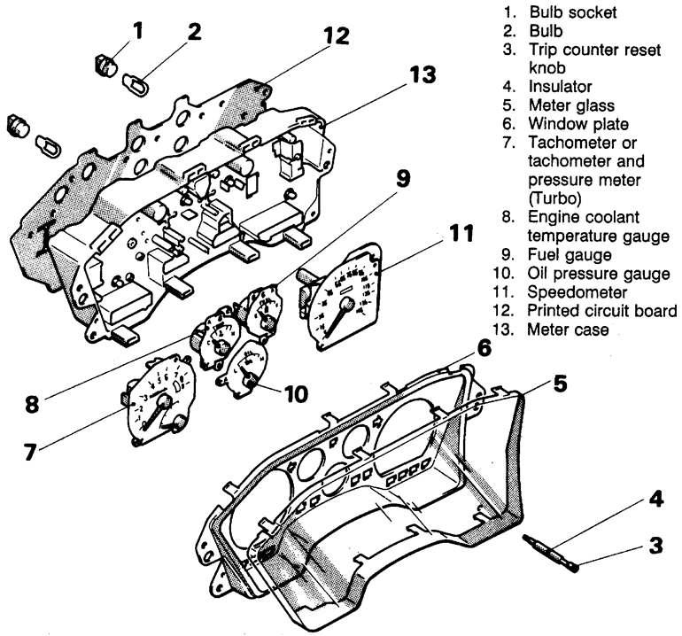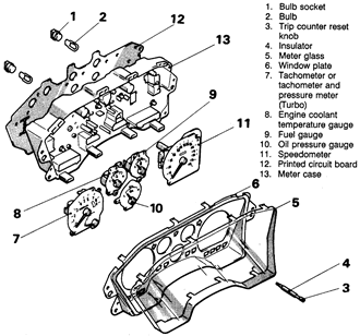 Remove the retainers and the tachometer or tachometer and pressure gauge,