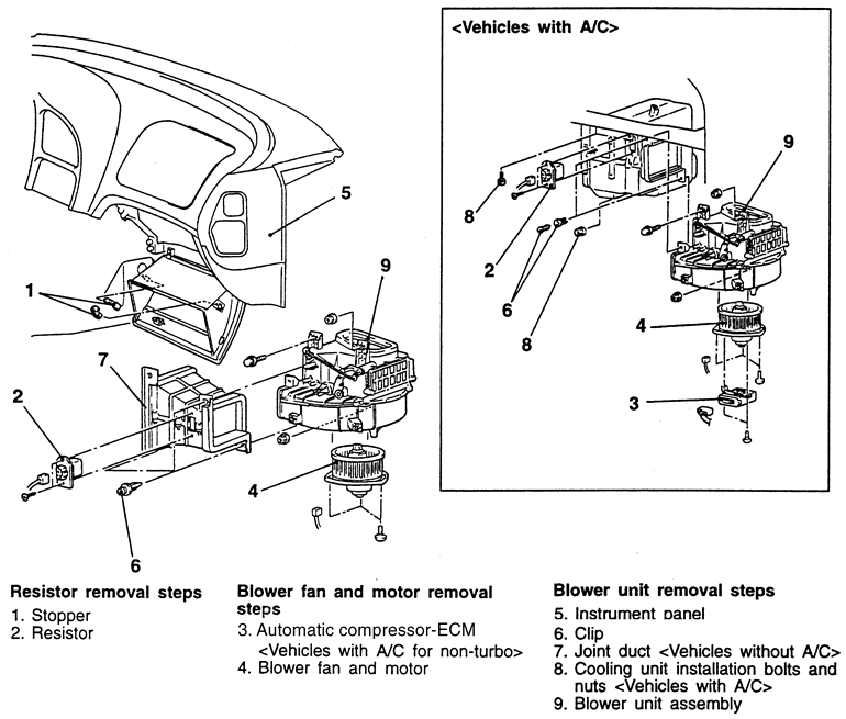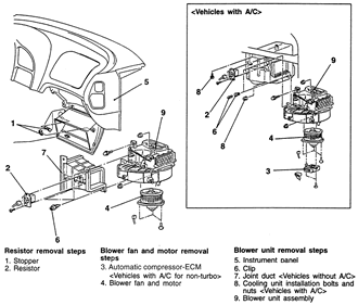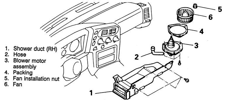 | Fig. 1: Exploded view of the blower motor and related components–1990–94 vehicles |
