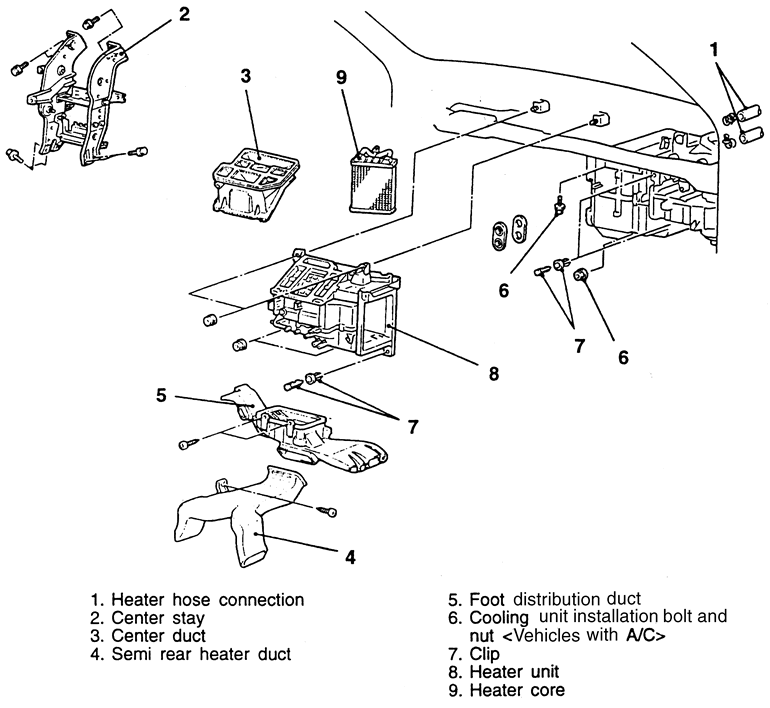- With the evaporator removed, remove the heater unit. To prevent bolts