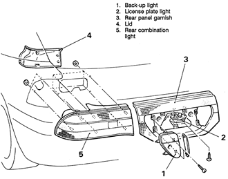 | Fig. 9: Rear combination light removal — 1990–94 Eclipse and Laser shown |