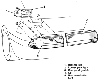 | Fig. 8: Exploded view of the rear combination light removal — 1990–94 Talon |