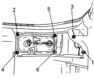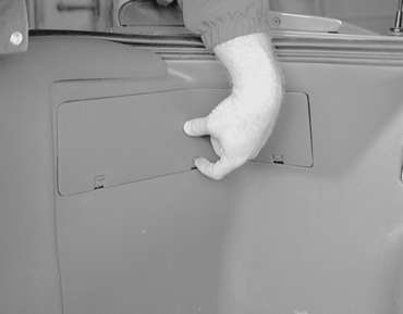 | Fig. 11: From inside the trunk, unlatch the retaining