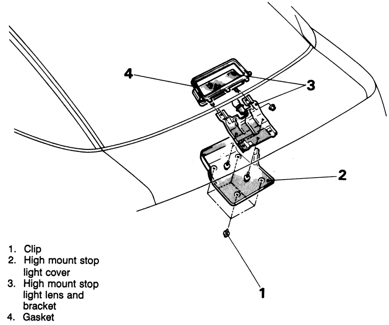 | Fig. 24: High-mount stop light removal — early model vehicles without rear spoiler, late models similar |