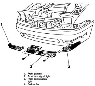 | Fig. 1: Front turn signal and combination light removal |