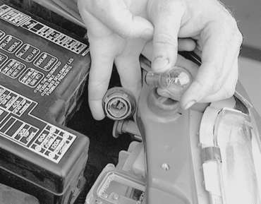 | Fig. 2: Remove the turn signal light bulb and socket