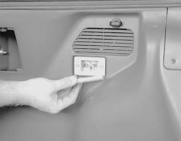 To replace the interior cargo area light bulbs, disconnect the negative battery cable, then refer to the accompanying figures.