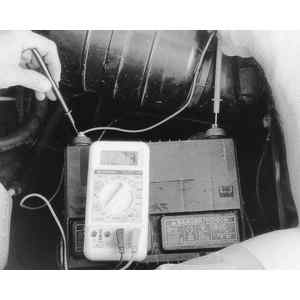 | Fig. 1: Using a multimeter to check battery voltage.
