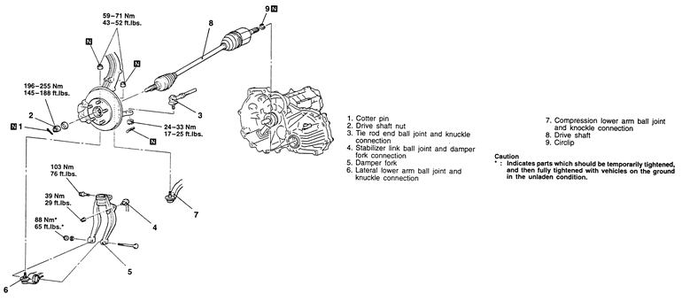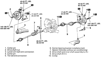 | Fig. 1: Exploded view of the front halfshaft assemblies — 1990–94