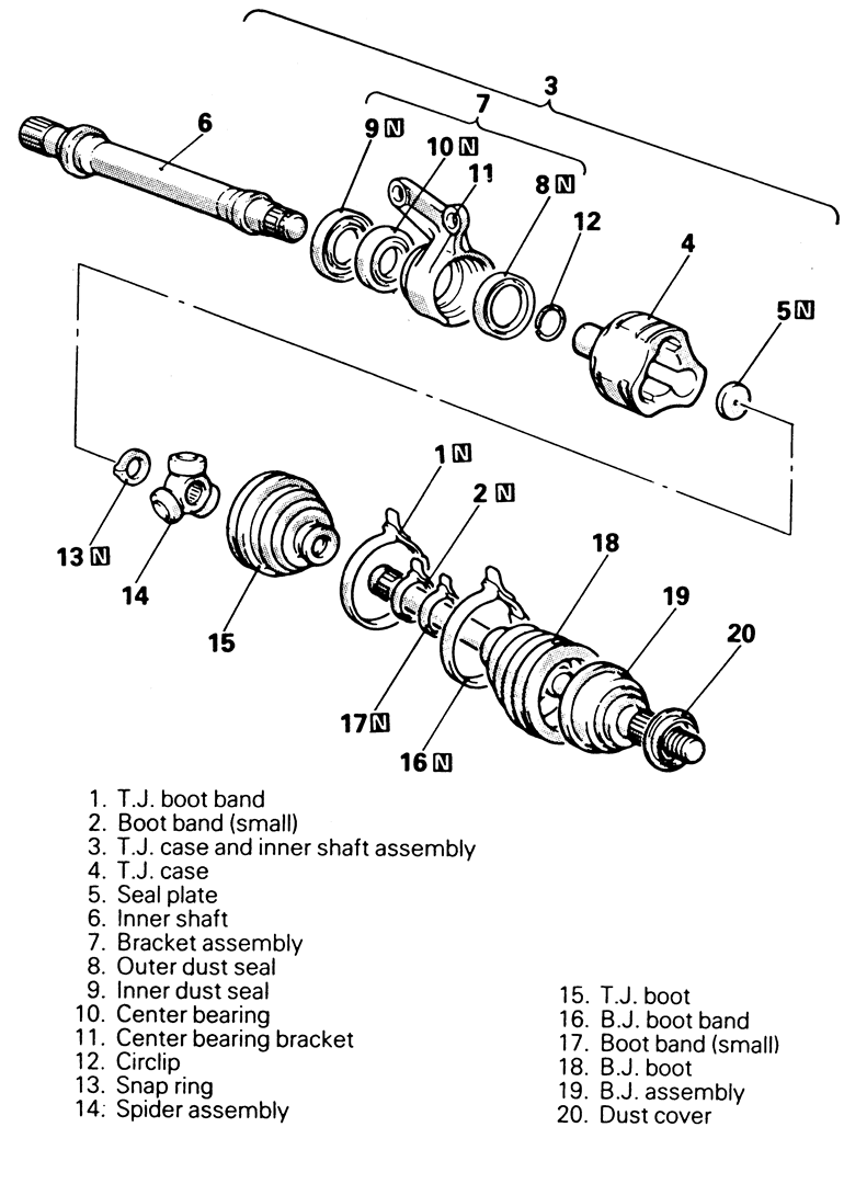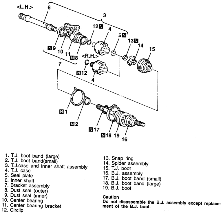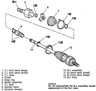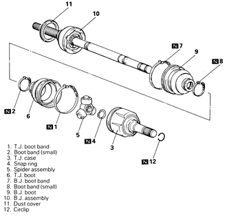| Fig. 3: Exploded view of the halfshaft assembly — 1995–98