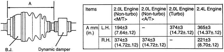 sure the boot span on the halfshaft is 3.23–3.47 in. (82–88mm)