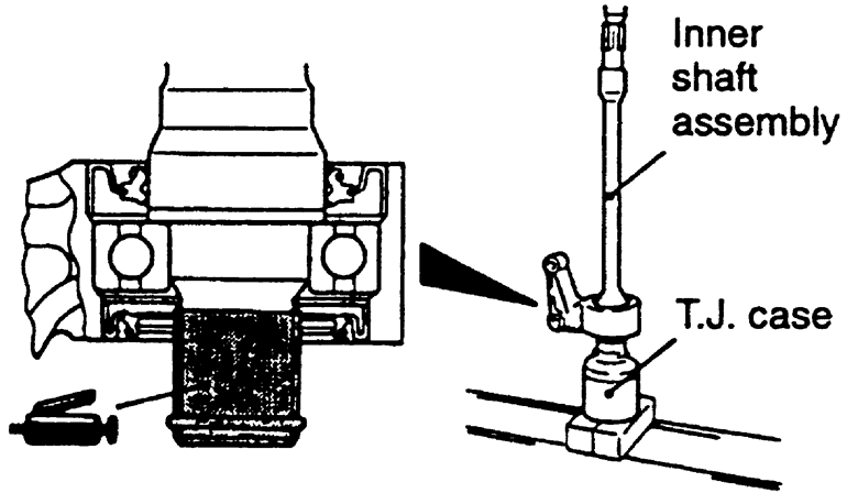 - Remove the T.J. case and inner shaft assembly (if equipped).