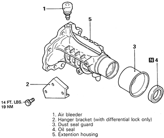 Fig. 1: Exploded view of the transfer case extension housing and related components