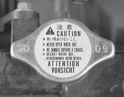 burns can occur from the steam and hot coolant. Also, when draining engine