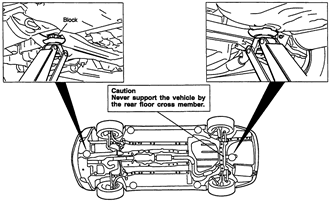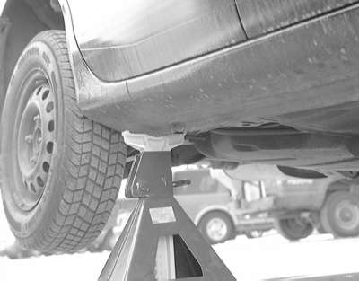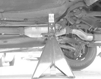 Whenever you plan to work under the vehicle, you must support it on jackstands or ramps. Never use cinder blocks or stacks of wood to support the vehicle, even if you're only going to be under it for a few minutes. Never crawl under the vehicle when it is supported only by the tire-changing jack or other floor jack.