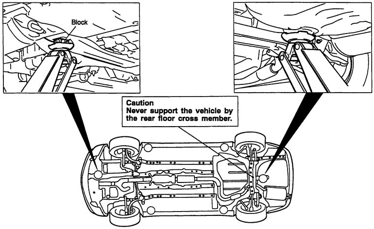 NOTE: Always position a block of wood or small rubber pad on top of the jack or jackstand to protect the lifting point's finish when lifting or supporting the vehicle.