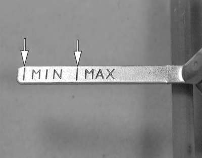 | Fig. 3: Make sure the fluid lines are between the MIN