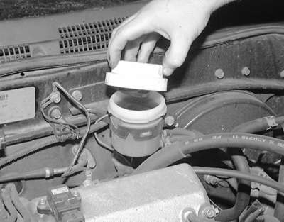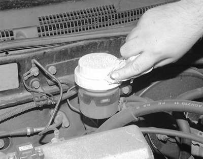 | Fig. 2: Wipe the master cylinder reservoir clean before