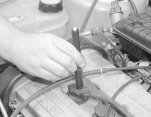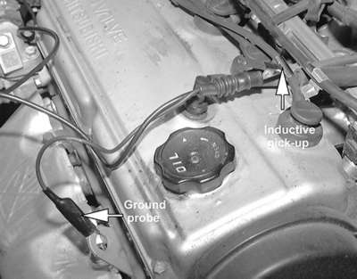 The best way to perform this procedure is to use a spark tester (available at most automotive parts stores). Three types of spark testers are commonly available. The Neon Bulb type is connected to the spark plug wire and flashes with each ignition pulse. The Air Gap type must be adjusted to the individual spark plug gap specified for the engine. The last type of spark plug tester looks like a spark plug with a grounding clip on the side, but there is no side electrode for the spark to jump to. The last two types of testers allows the user to not only detect the presence of spark, but also the intensity (orange/yellow is weak, blue is strong).