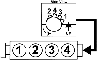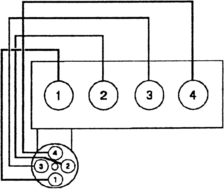 | Fig. 5: 2.4L (4G64) engine with distributor ignition Firing order: 1–3–4–2 Distributor rotation: Counterclockwise |