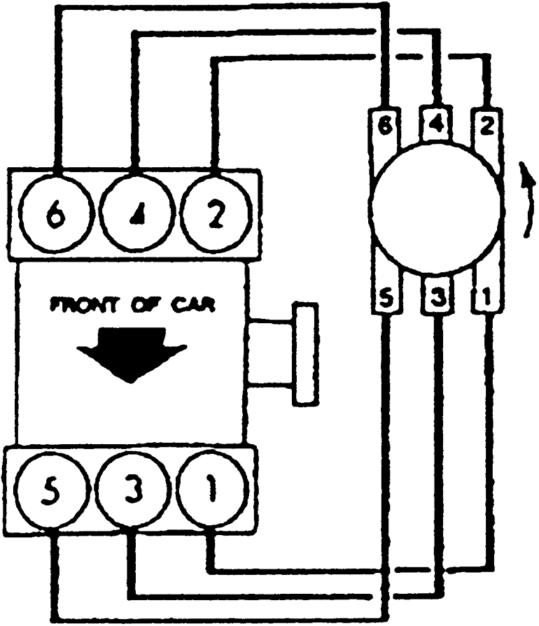 If a distributor is not keyed for installation with only one orientation, it could have been removed previously and rewired. The resultant wiring would hold the correct firing order, but could change the relative placement of the plug towers in relation to the engine. For this reason it is imperative that you label all wires before disconnecting any of them. Also, before removal, compare the current wiring with the accompanying illustrations. If the current wiring does not match, make notes in your book to reflect how your engine is wired.