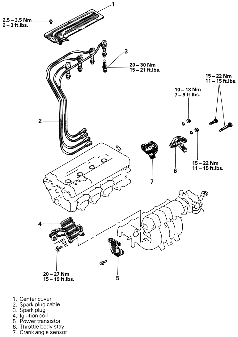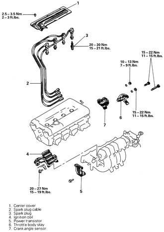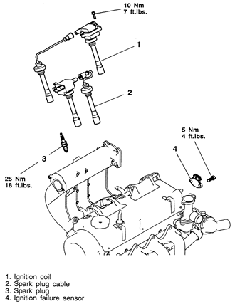 Fig. 1: Ignition system component locations — 1.6L and 2.0L DOHC engines