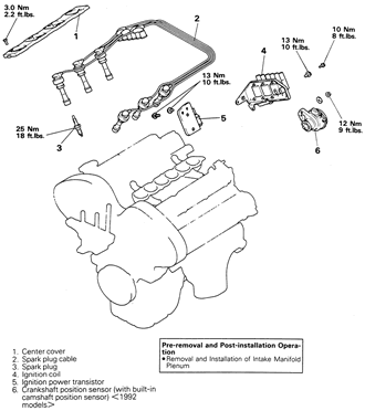Fig. 3: Ignition system component locations — 3.0L DOHC engine