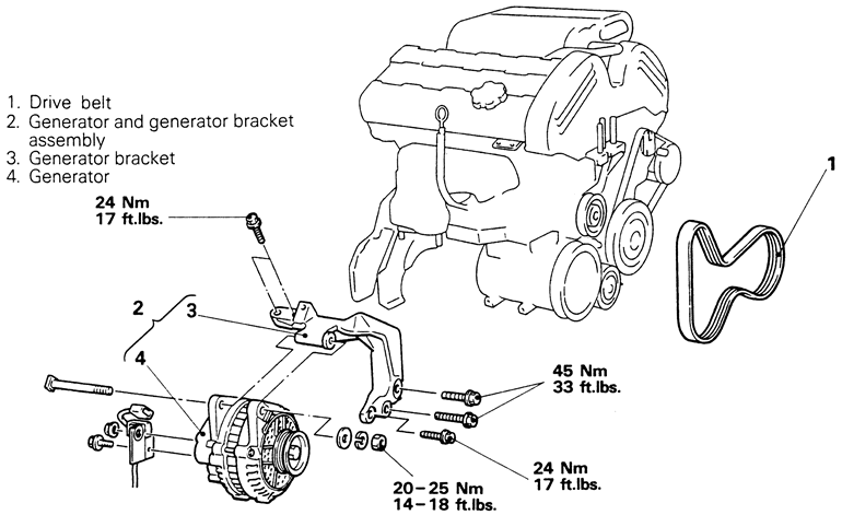 | Fig. 9: Alternator mounting — 3.0L DOHC engine |