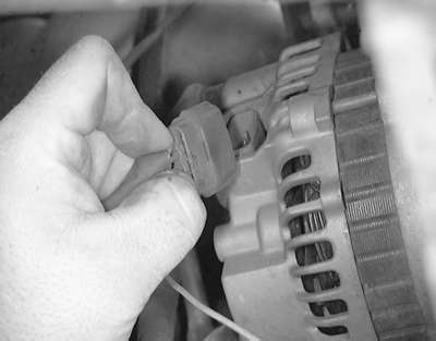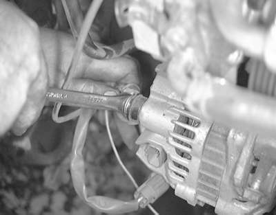 | Fig. 8: . . . then remove the alternator from the vehicle