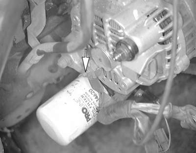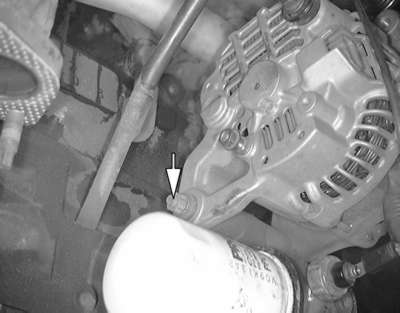 | Fig. 6: . . . then remove the pivot bolt from the alternator